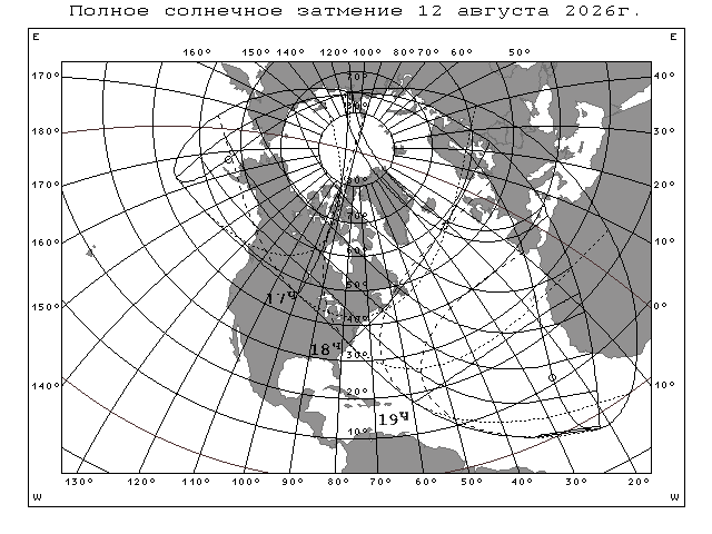 | 12 августа | Полное солнечное затмение | Описание | ![]() |